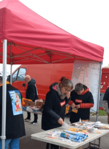 Retour en image sur l’action du samedi 2 novembre aux 3 entrées du village du Vendée Globe aux Sables d’Olonne (environ 100 000 entrées/jour en moyenne).